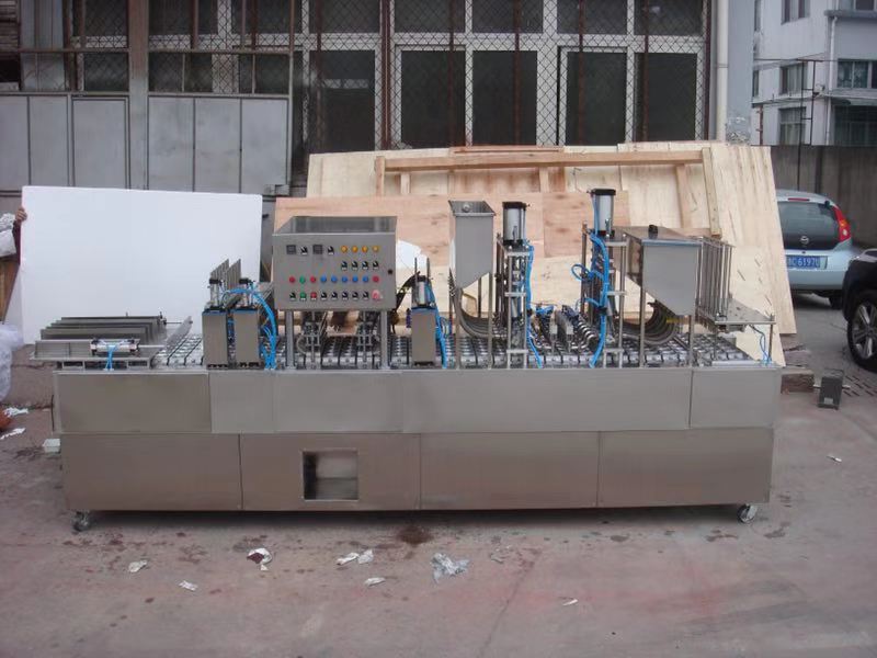 2、 采用氣電、機(jī)械一體設(shè)計,傳動平穩(wěn),從容器的供給、充填、封口、切邊、制品的輸出、廢料收卷等完全自動化,以節(jié)約人力,降低成本。