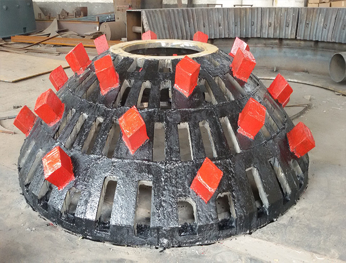 二.采用雙曲面盤塔體形成多級破碎裝置, 采用改進型篦式出料裝置,增強破碎能力,加快卸料速度,使窯內(nèi)底火平穩(wěn)不拉深,落料平衡,燒結(jié)料出料粒度均勻。